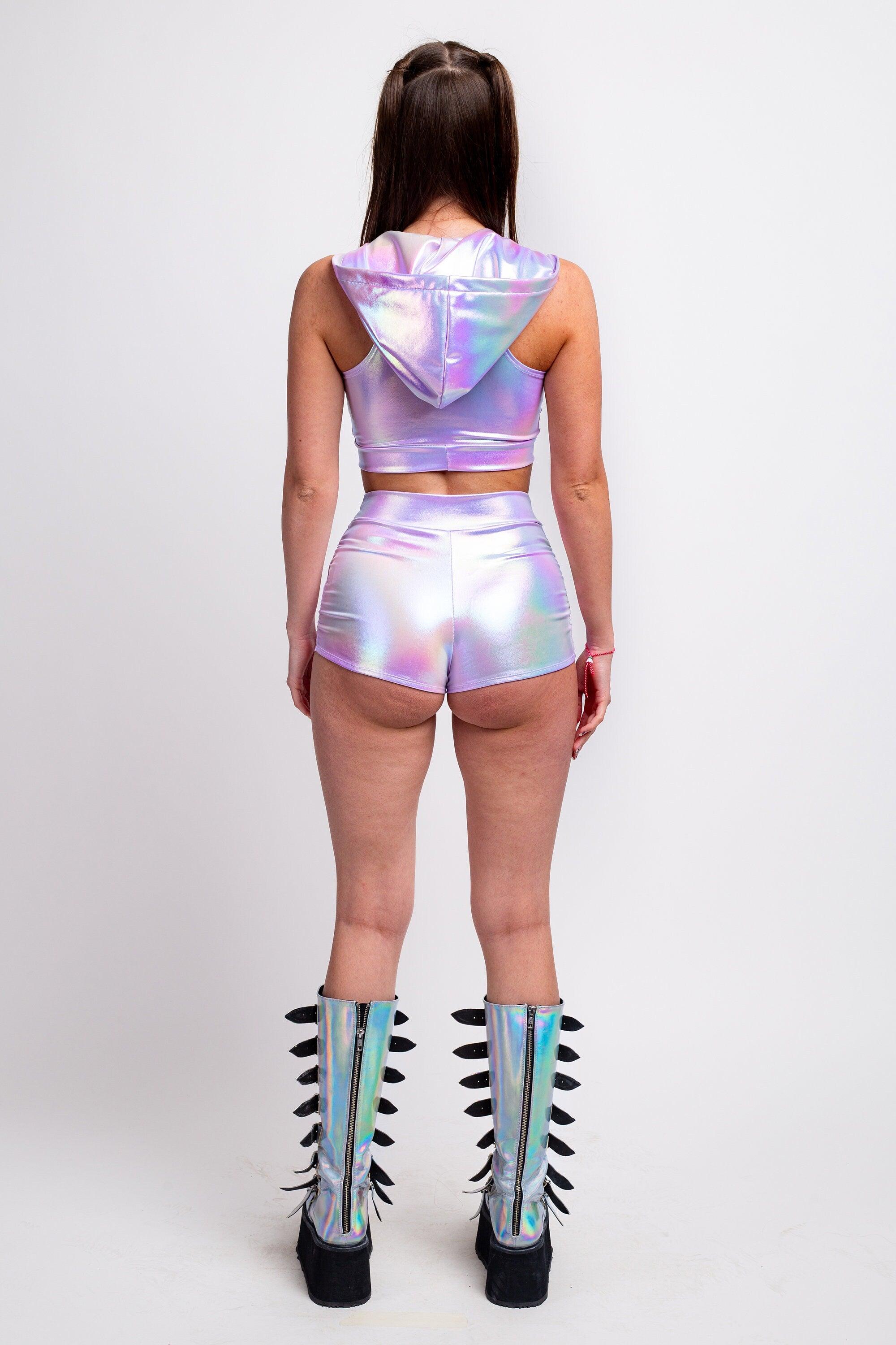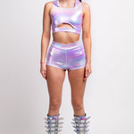 Purple Holo Ruched High Waist Shorts